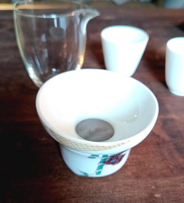 Quand on verse le thé du gaiwan ou de la théière dans la verseuse ou la tasse, quelques feuilles peuvent glisser.
