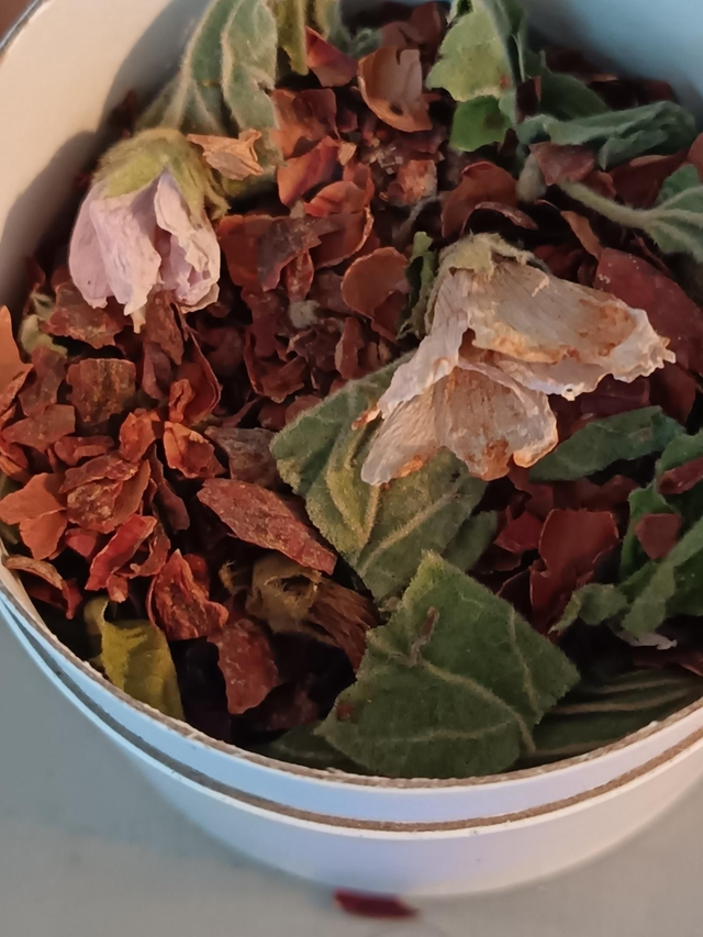 * Des fleurs et des feuilles de guimauve du jardin